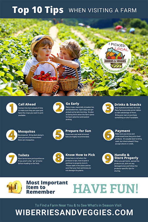 1. Call Ahead - Most important, contact the farm ahead of time to make sure they are open and have the crops you want to pick available. It's no fun to arrive excited to pick only to find out they are picked out or unexpectedly closed.